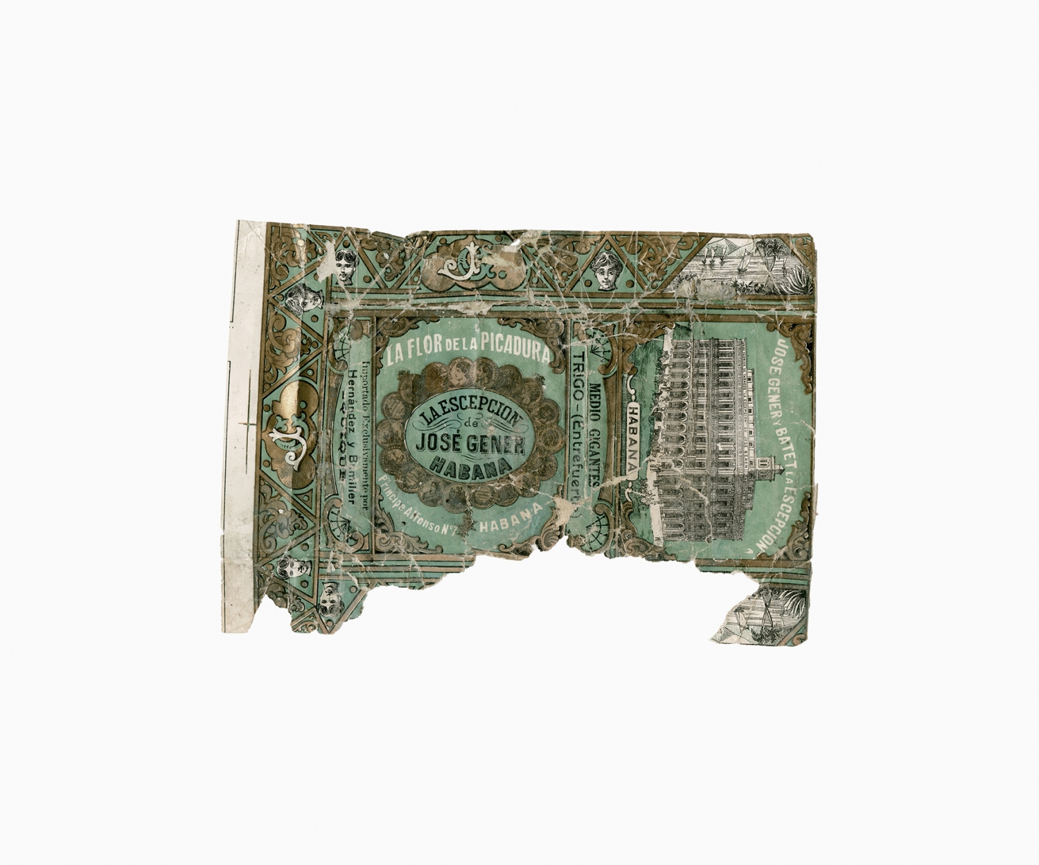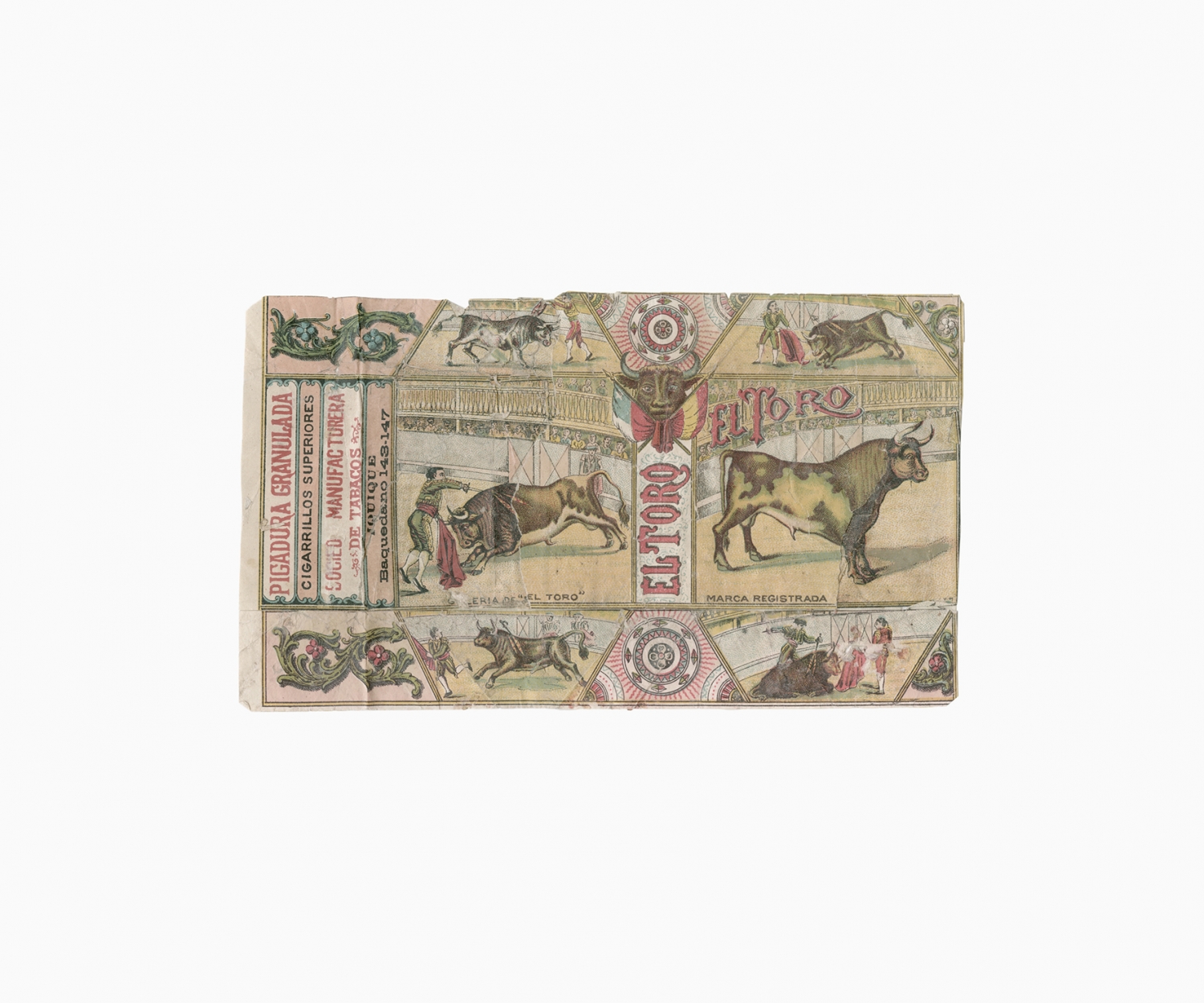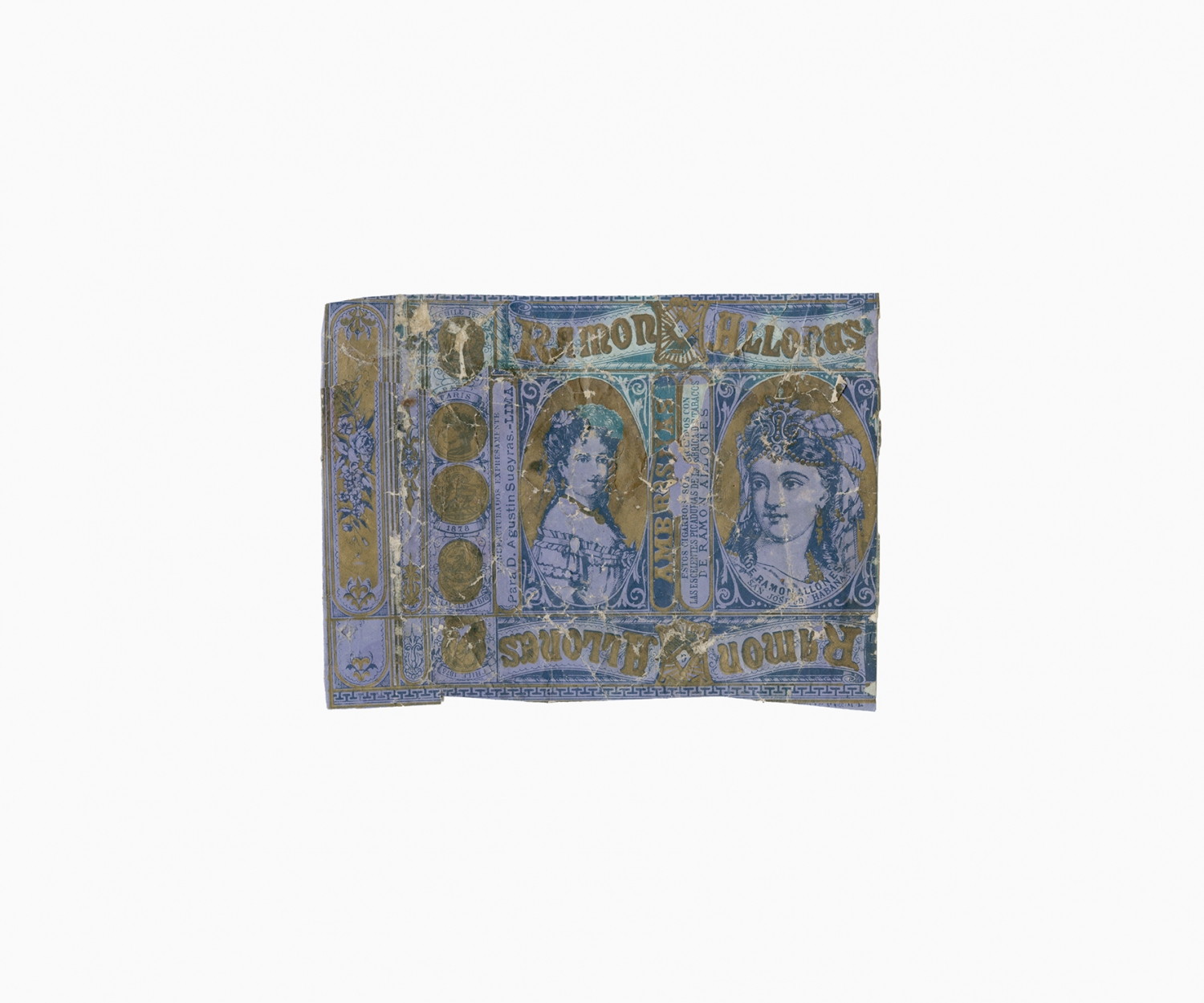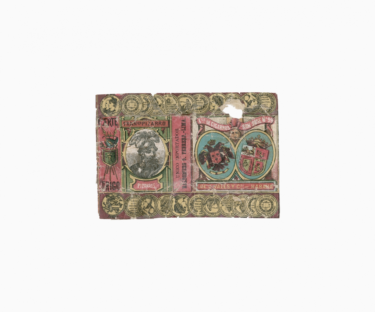 Smoking tobacco was an important part of the social and working life of the nitrate worker. Like chewing coca leaves, smoking tobacco helped to endure the harsh working and living conditions in the Atacama Desert. Smoking and tobacco are recurrent subjects in oral histories, diaries and literary accounts of life in the desert. The following images are examples from a large collection of over six hundred used tobacco wrappers dating from the 'British nitrate era' (1870s to 1920s) that have been dug out from the rubbish dumps of abandoned nitrate towns in the Atacama Desert by Gjorgji Gjuranovic, an amateur historian and archaeologist from Iquique. This personal collection is an archive of the desert. Laid out in a grid, these few hundred tobacco wrappers configure a historical tapestry of the material life of the nitrate worker, preserved for more than a hundred years in the driest desert on Earth.