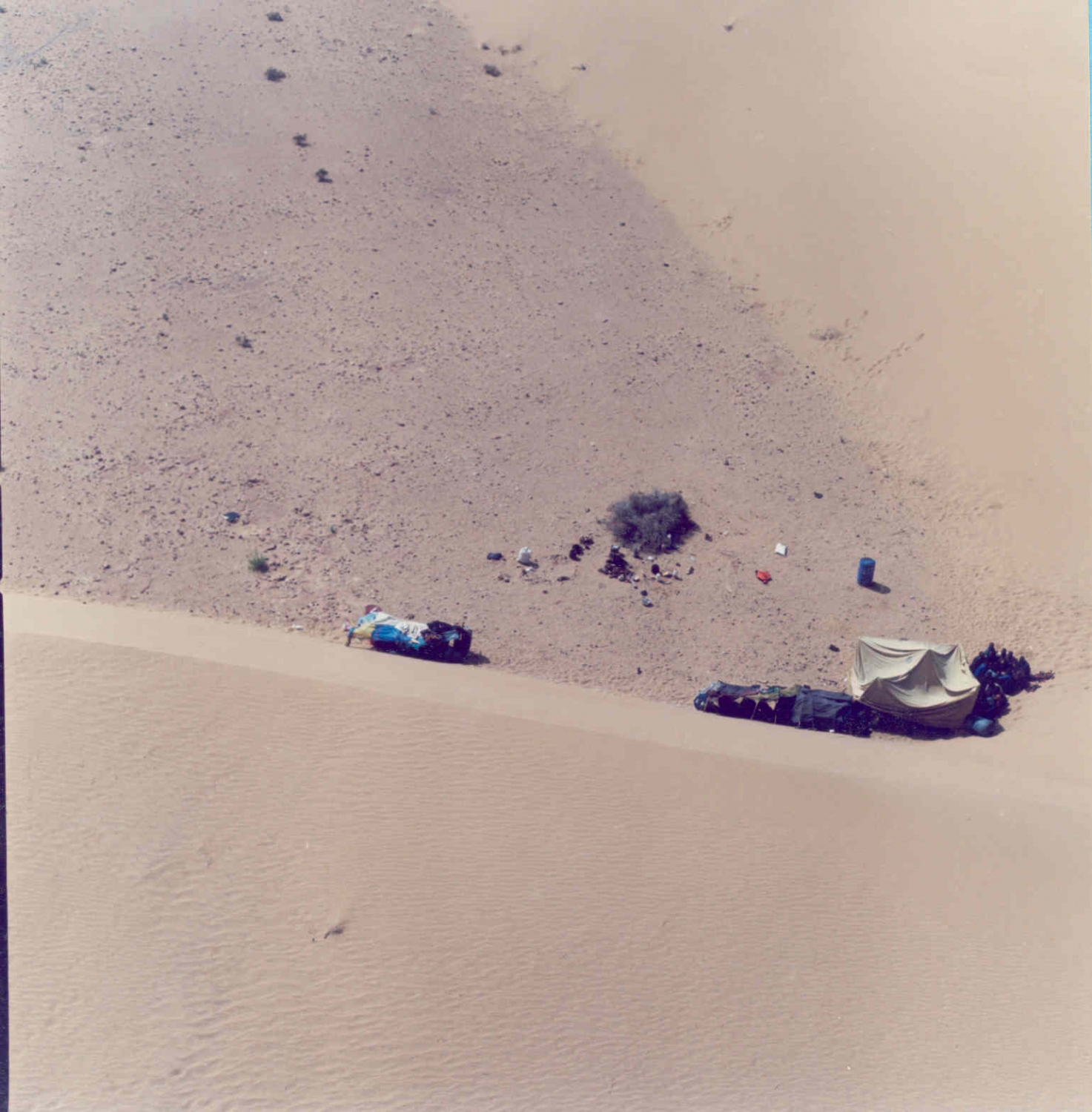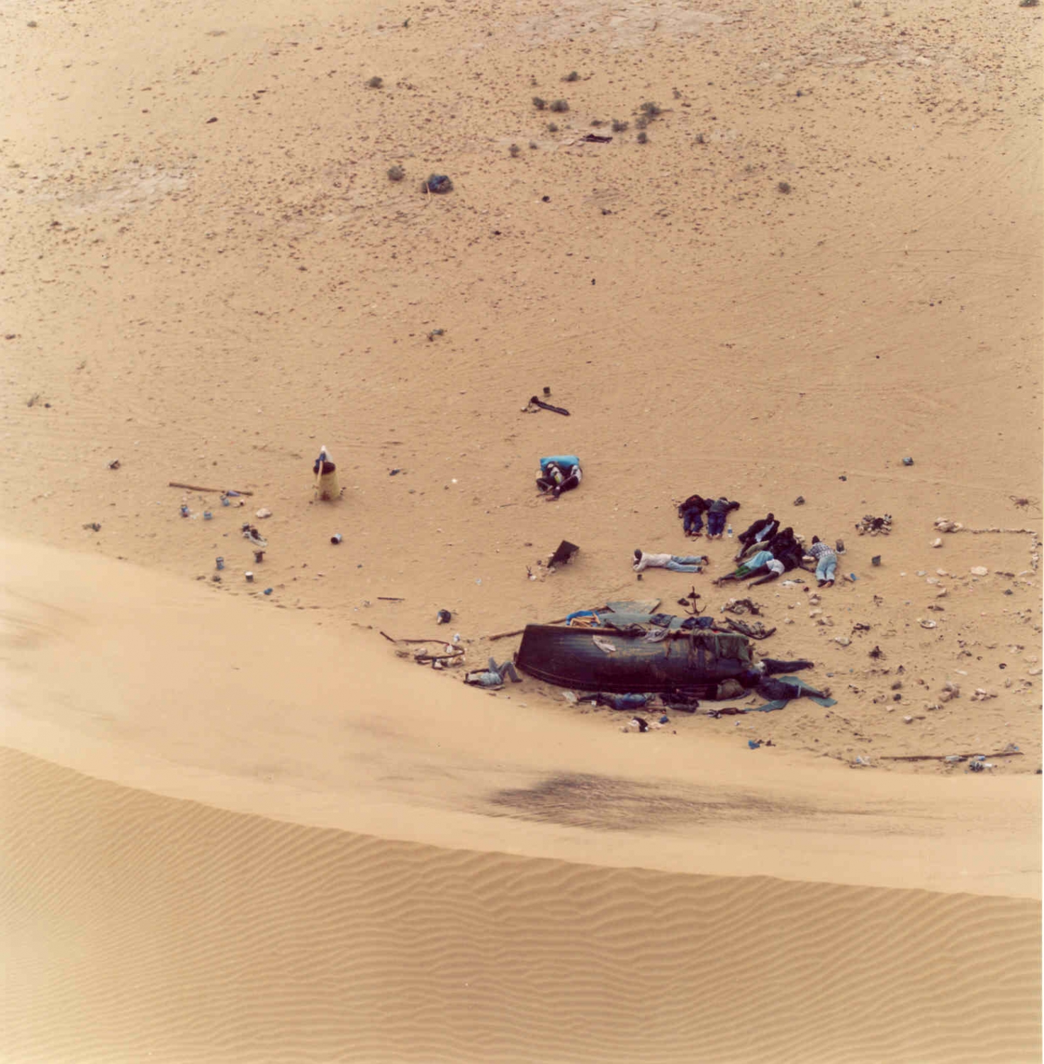 Sahara Chronicle includes a number of records of the more or less successful efforts at keeping the fluctuating migration currents through Morocco, Mauritania and Libya in check, by means ranging from off-road patrols in border terrain to aerial surveys by propeller planes and high-tech surveillance drones. Engaging with this politics of containment sucked me right into the gigantic visualizing apparatus and made me a part of it.