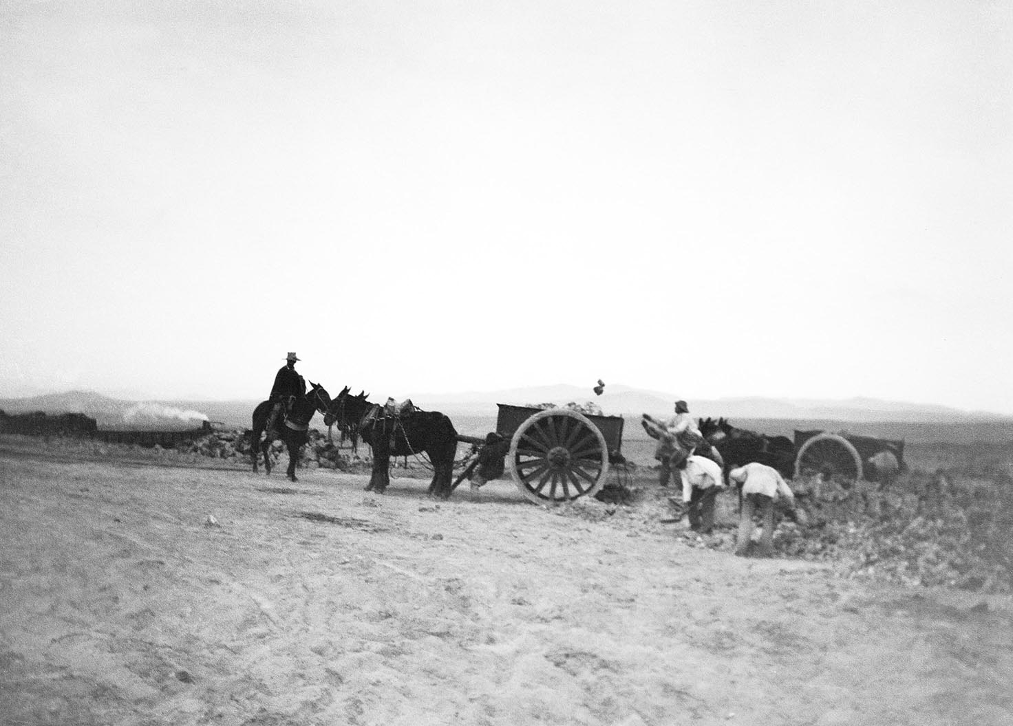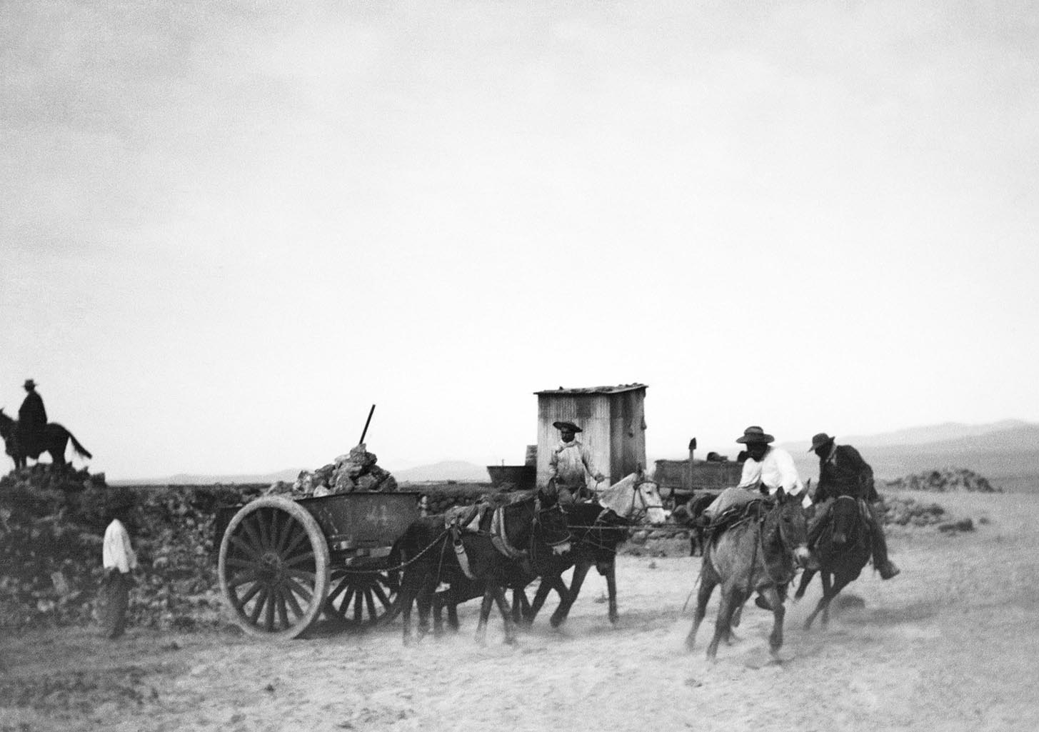 The images clearly respond to imaginaries associated with the 'border of Empire', seeing natives and workers not as individuals but as part of the scene. But the subject of her photographs is not investment, or property, or the production cycle, as it is in the other known photographic albums of the nitrate desert. Neither is it the worker, or the machine, or the worker standing, as an extension of the machine. Loomis Todd's photographs constitute a visual diary of a frontier territory, capturing fleeting moments of hard labour around the nitrate fields of Alianza, making visible the movement of the bodies, of men and animals, at the very moment of exploitation. While not providing a vision 'against the grain', Mabel's photographs do give,