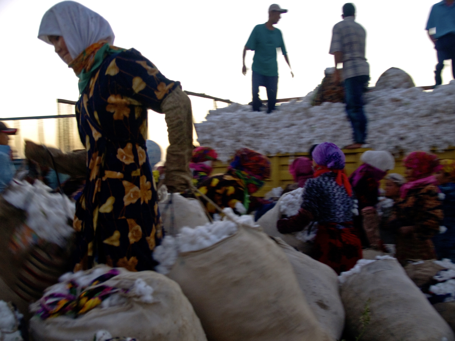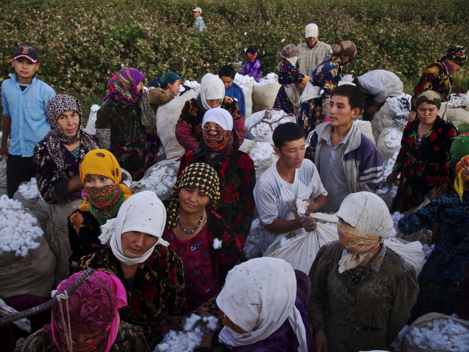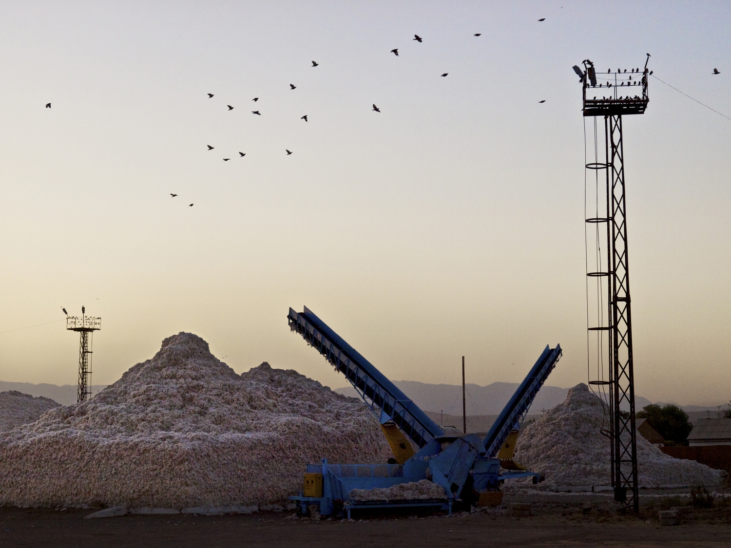 Chemical use and excessive irrigation of cotton fields in Central Asia turned the fertile paradise of the Aral Sea into a chemically polluted salt desert. The decline continues in the south, where Uzbekistan forces its population to work the cotton fields.