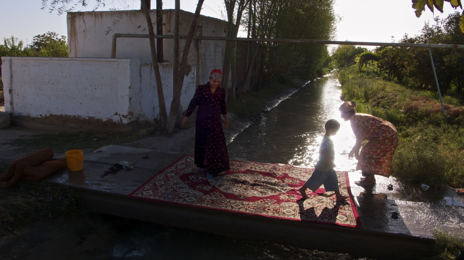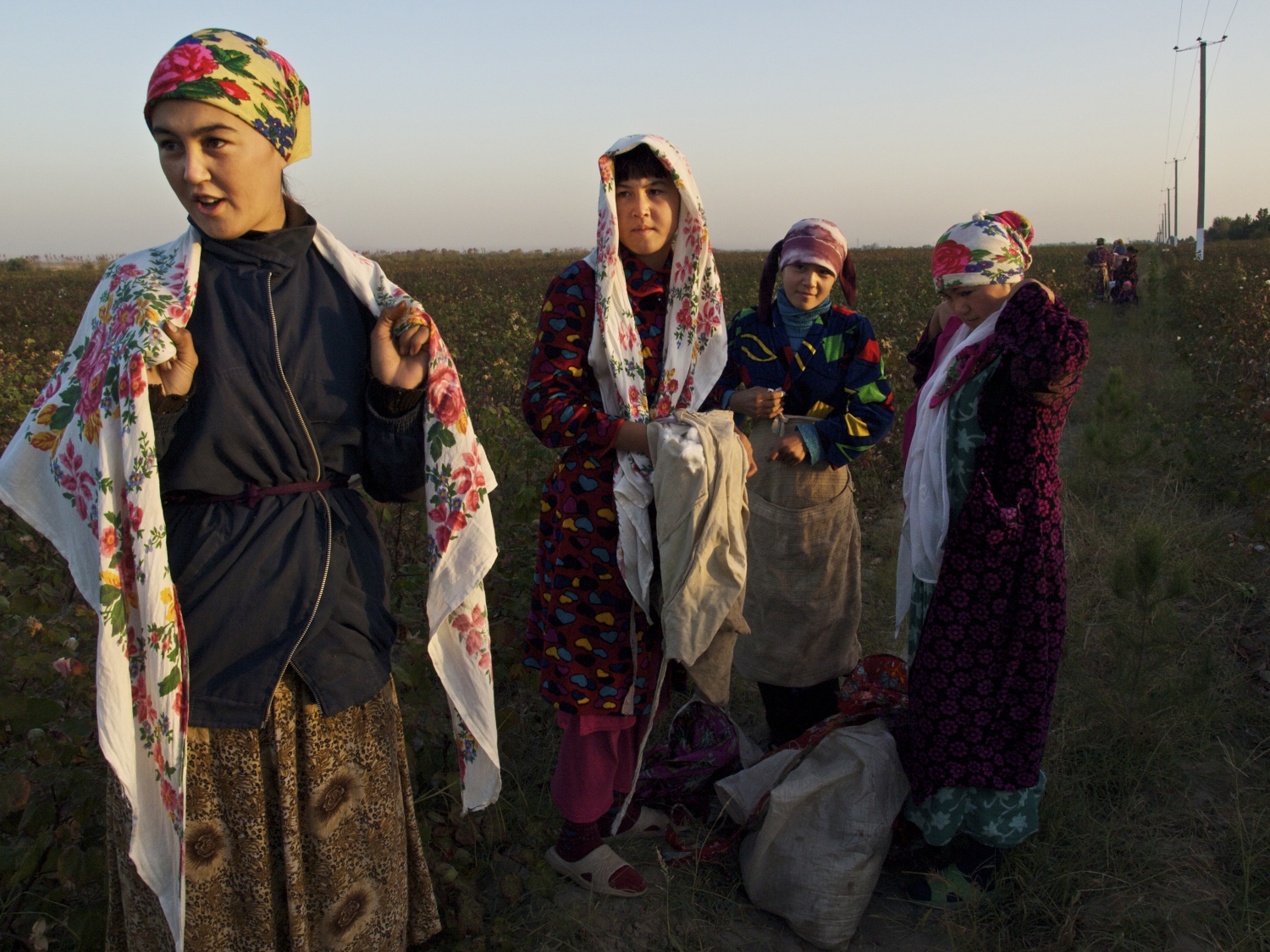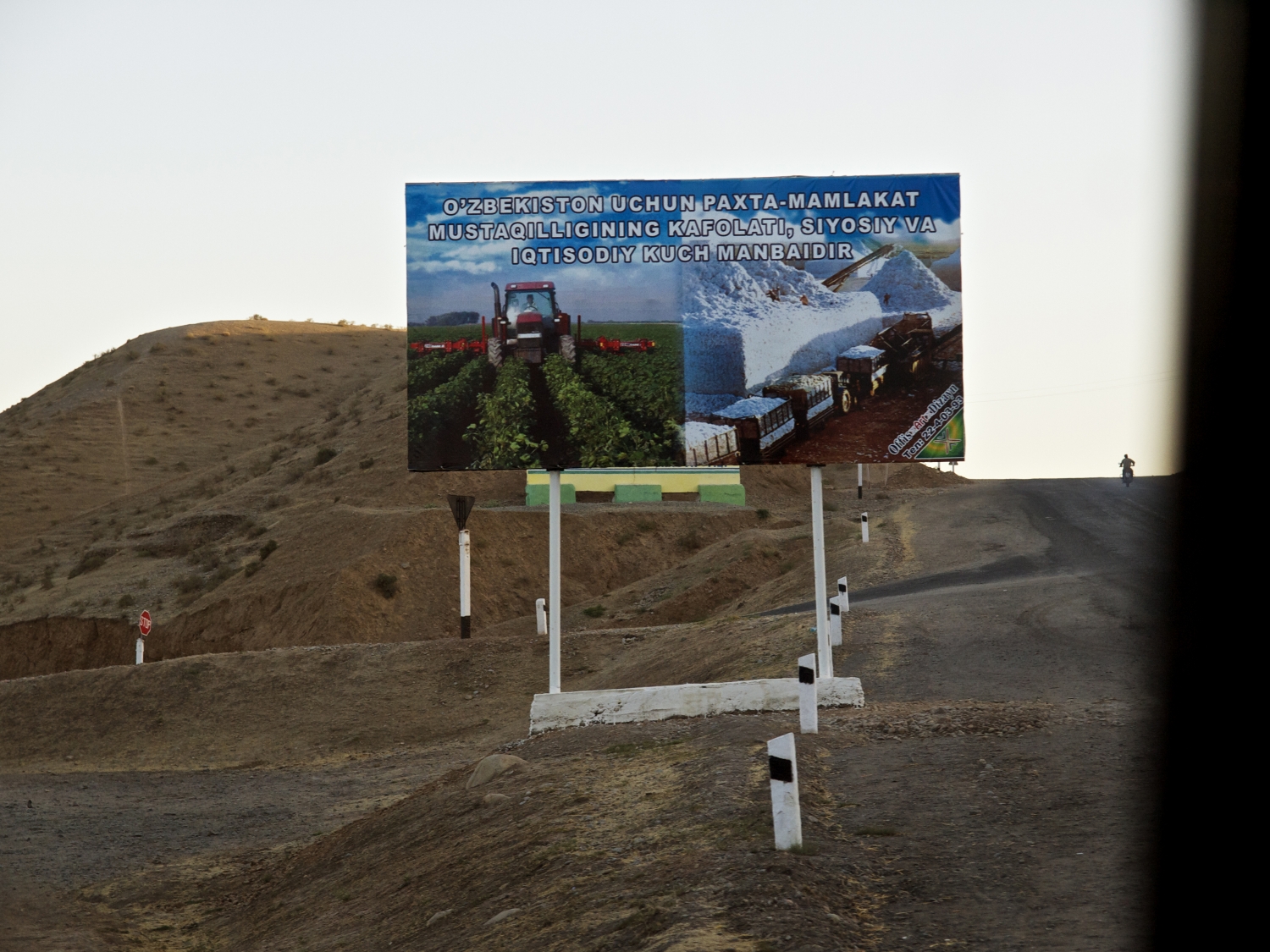 Chemical use and excessive irrigation of cotton fields in Central Asia turned the fertile paradise of the Aral Sea into a chemically polluted salt desert. The decline continues in the south, where Uzbekistan forces its population to work the cotton fields.