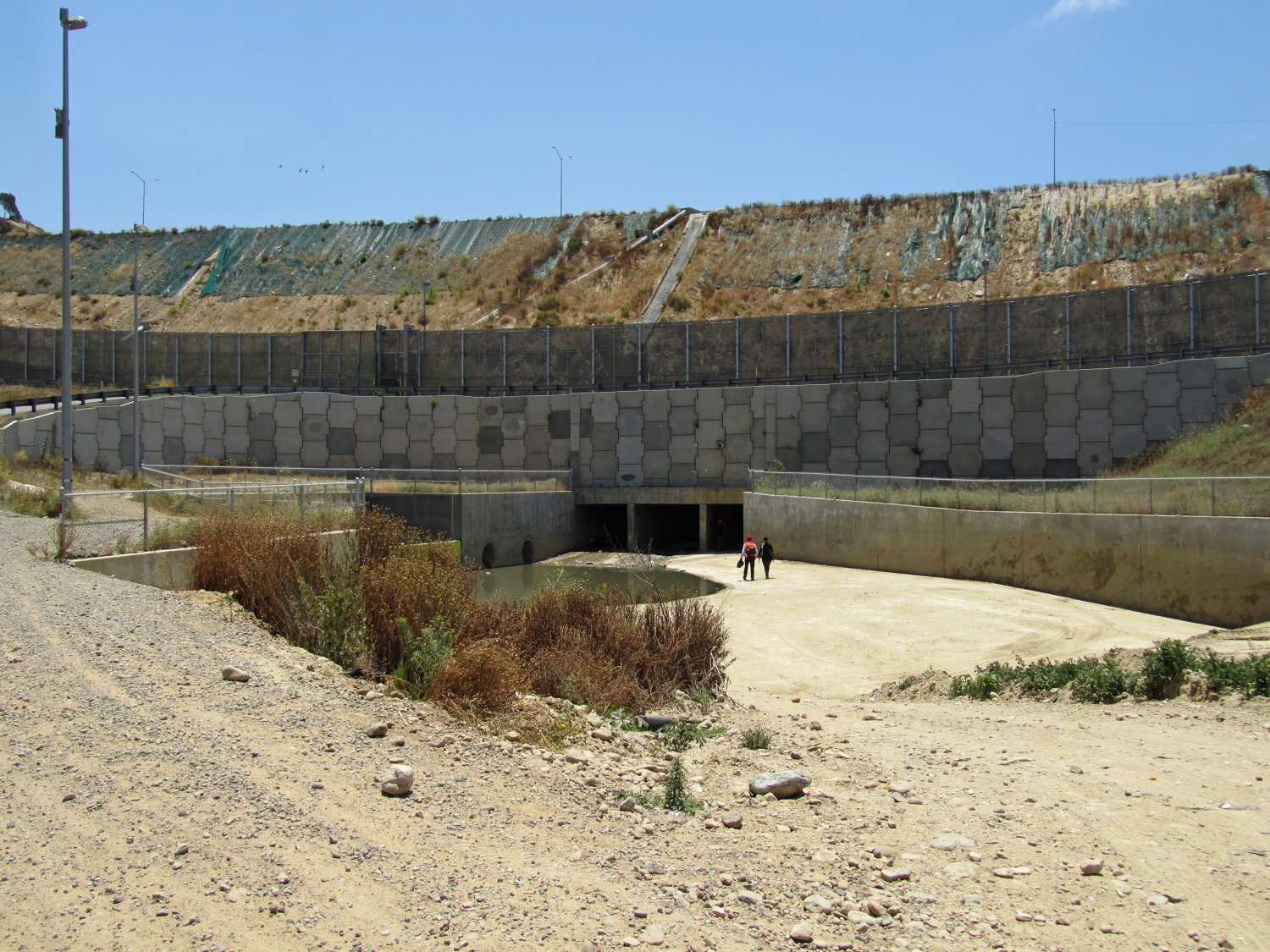 These intersections and overlaps provided the conceptual framework for an unconventional border crossing that was organized in June 2011 as the centre piece of the international conference Political Equator 3. Participants crossed the border near the Tijuana River Estuary through a heavily guarded culvert in the border fence built by the US Homeland Security. Rather than the open sea, the role of the elastic border was taken here by a small drain next to a sediment basin, which due to the tectonic structure of the site protrudes through the border fortifications and carries polluted river water from the informal border settlement of Los Laureles on the Mexican side into the estuary on the American side, from where it is pumped into water treatment plants. The specific permeability of the border between the USA and Mexico—a technical requirement necessitated by the geology—was put to the test by the PE3 meeting in an attempt to transform the border as a limitation on possibilities into a border as a space of possibilities, in which not only dirty water but also a plurality of nationalities could find a place. Within the framework of an artistic project, 200 registered people—including numerous international specialists working on border areas, migration movements and environmental protection—were given permission by authorities on both sides to make this hitherto unique crossing. In the meticulously negotiated and precisely orchestrated performance A Public Border Crossing, which was carefully observed by the US Homeland Security from above, participants crossed the border on foot through a storm drain running underneath the massive border fence and climbed out of the Los Laureles Canyon on the Mexican side.