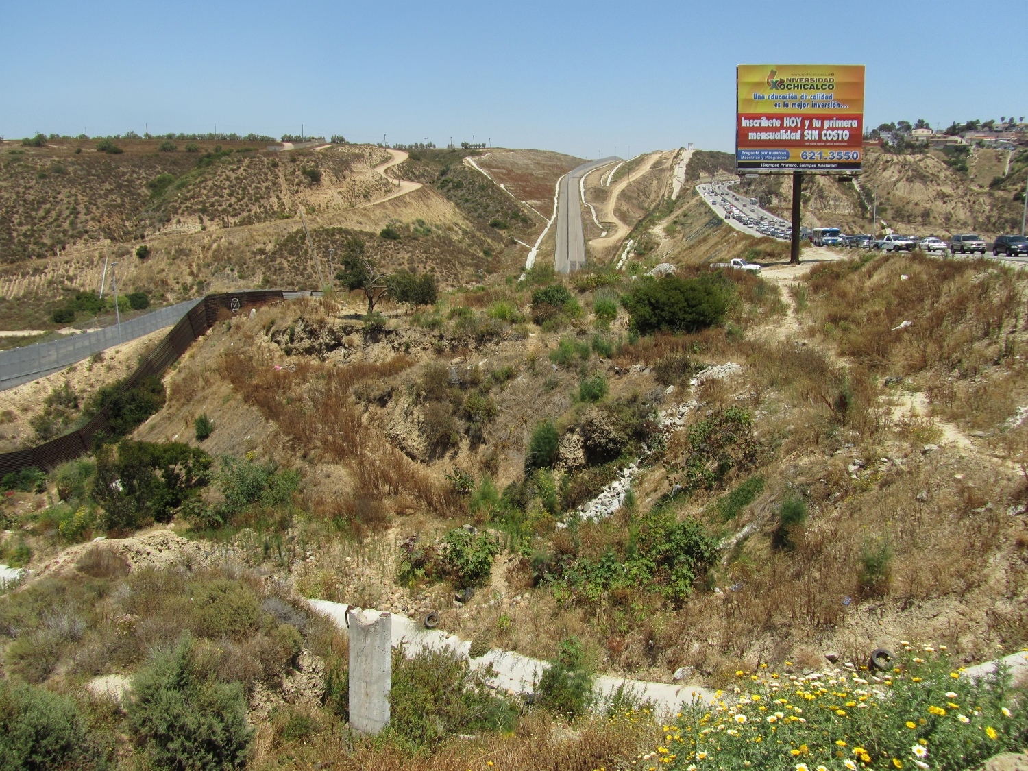 The political equator that his project challenges is an imaginary line that spans the world between prosperous and poor countries and that, with the aid of complex steering mechanisms, divides the material reality of the global North from that of the global South. It is “an operative critical threshold that bends, fragments and stretches in order to reveal other sites of conflict worldwide where invisible trans-hemispheric sociopolitical, economic and environmental dynamics are manifested at regional and local scales.”2 This line becomes most tangible where sensor systems, walls, ramparts or entire landscapes are deployed to maintain a separation between the valuable and non-valuable. Indeed, the San Diego-Tijuana metropolitan area itself is dominated by one of the world’s most intricate structural interventions in a landscape in the cause of protecting a political border: dozens of kilometres of newly erected barriers, highly engineered dams, embankments and drainage canals and triple fencing with multilane ramps to enable border patrols rapid access to every point of the border. However, despite this massive array of military technology the political equator is also a field of circulations in which encounters, intersections and contaminations of all kinds take place: between travellers, traders, border guards, migrants, political systems, cultural conventions, territorial jurisdictions, produced goods, animal inhabitants and all kinds of natural substances such as soil, air and water.