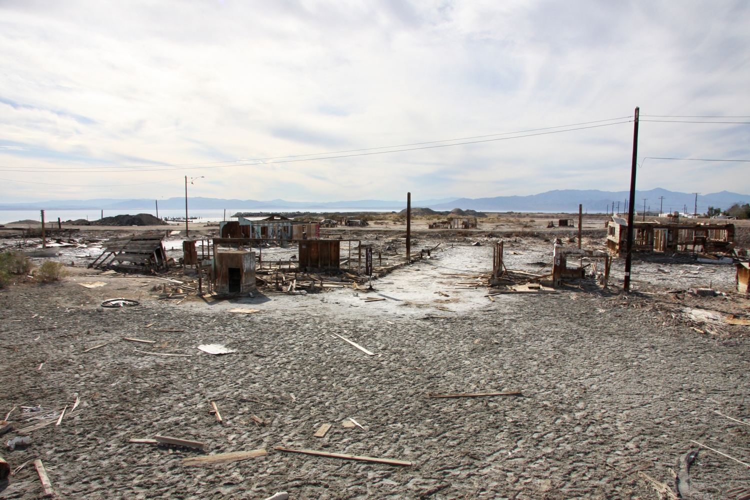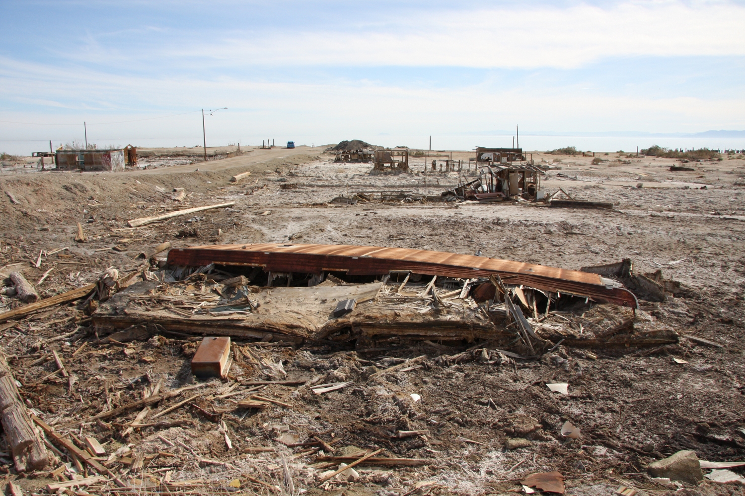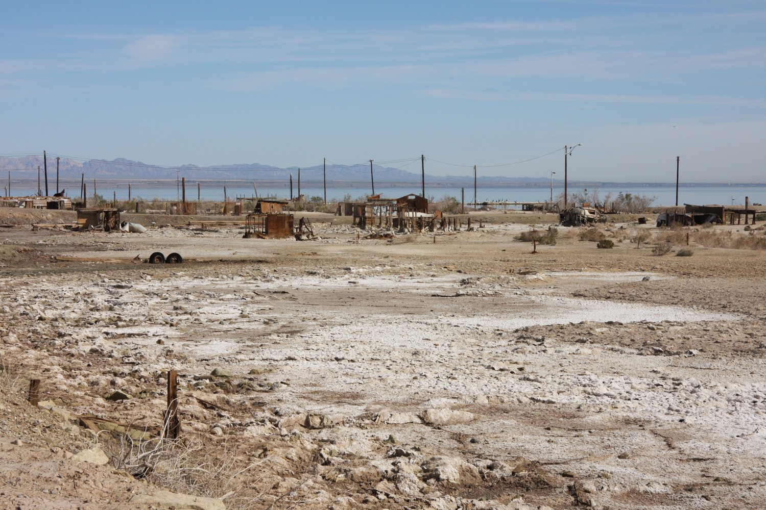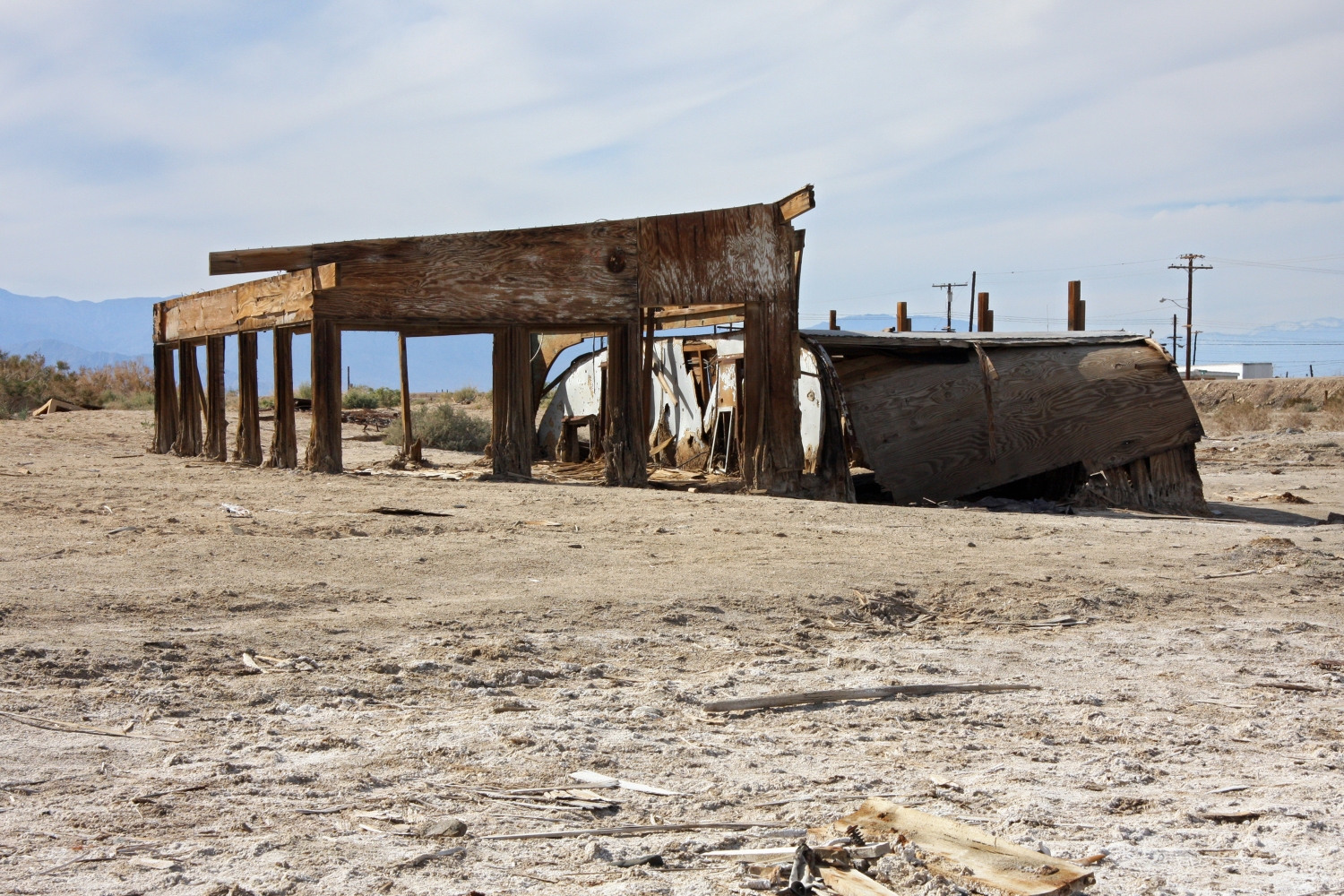 Salton City is a settlement area in southern California’s Colorado Desert that is often presented in different narrative genres as a symbol of the historical disaster of Californian land speculation, from Marisa Silver‘s The God of War (2008) to the documentary film Plaques and Pleasures on the Salton Sea (2007). In these portrayals the shared enthusiasm of the residents of Salton City is usually contrasted with the desolate scenery around them: the remains of wooden building s standing in the red mud and dried-out, headless palms framing the skeletons of rust-eaten campers and trucks, mountains of fish and bird cadavers, and crumbling infrastructure – relics of a better time.3 It is reported that Salton City is ridiculed or ignored by most Californian residents. And yet, located on the shores of the Salton Sea, California’s largest inland body of water, and boasting 350 days of sunshine every year, Salton City had auspicious beginnings.
