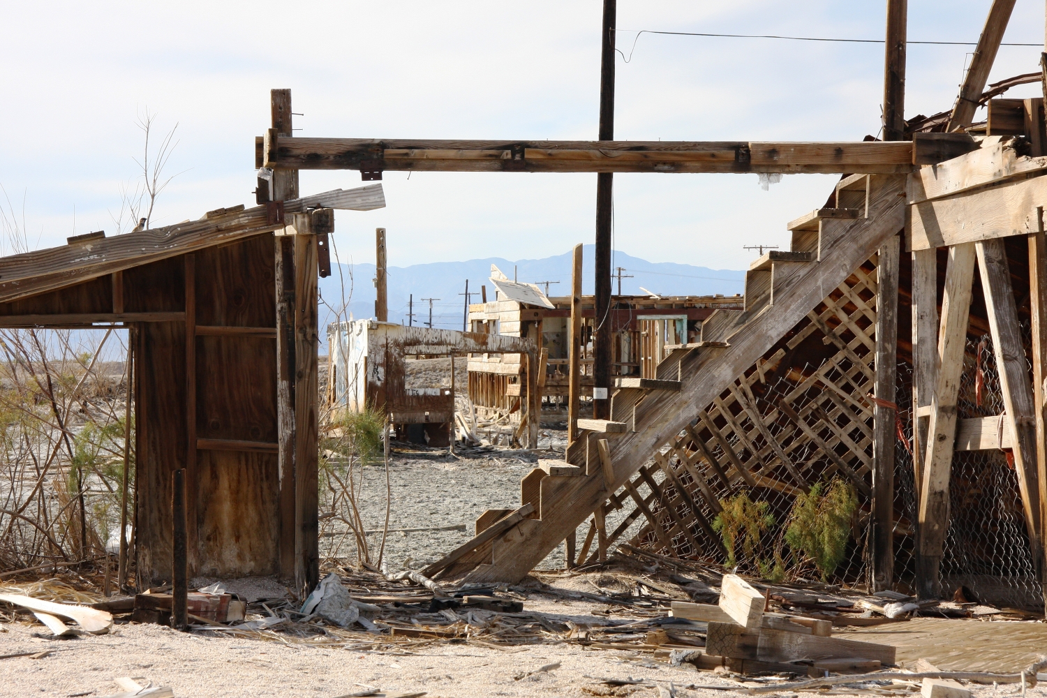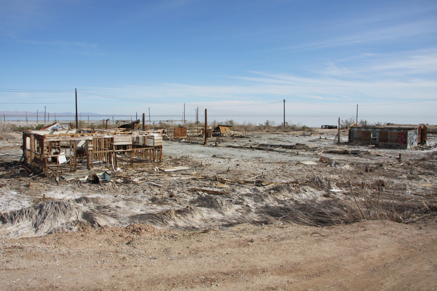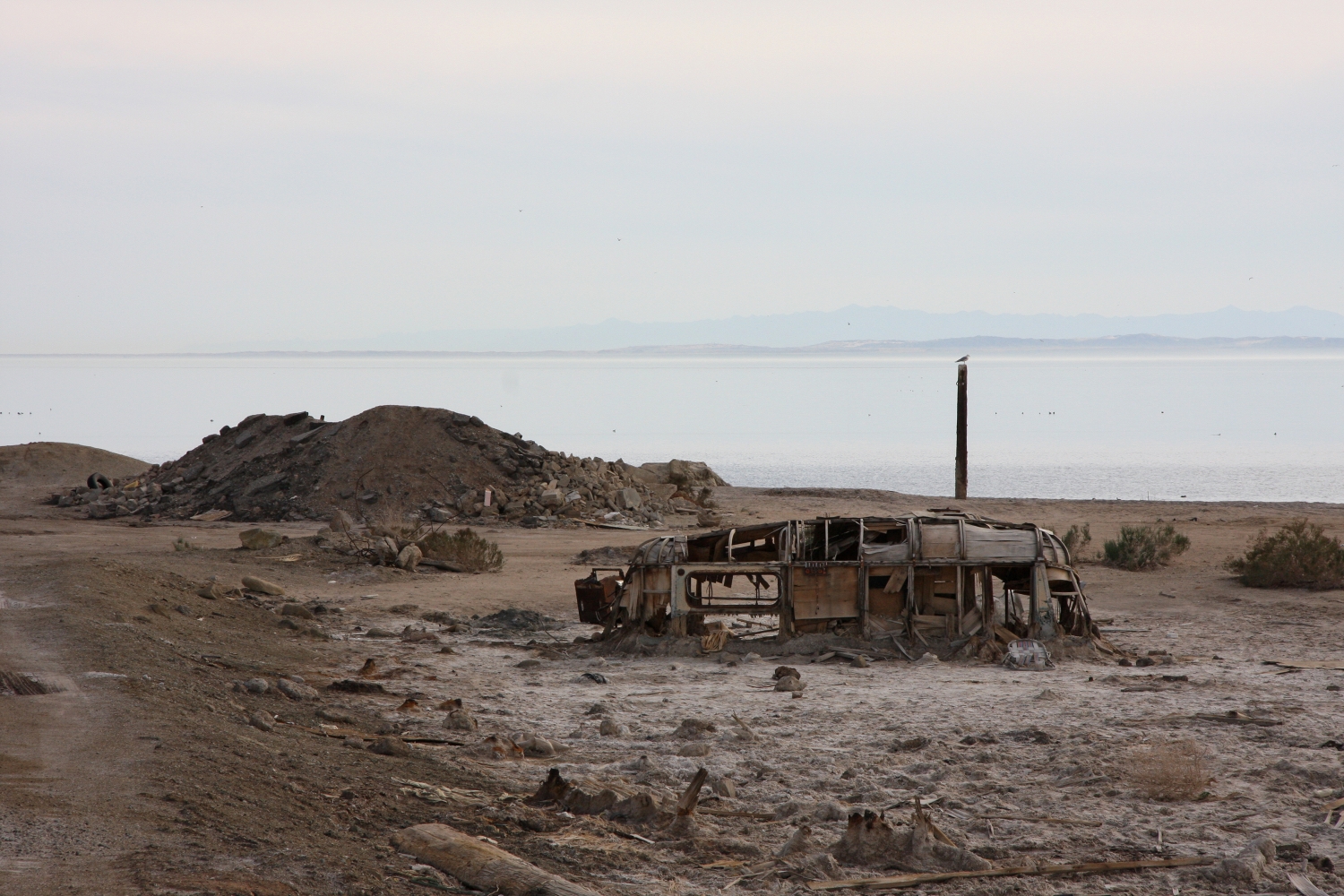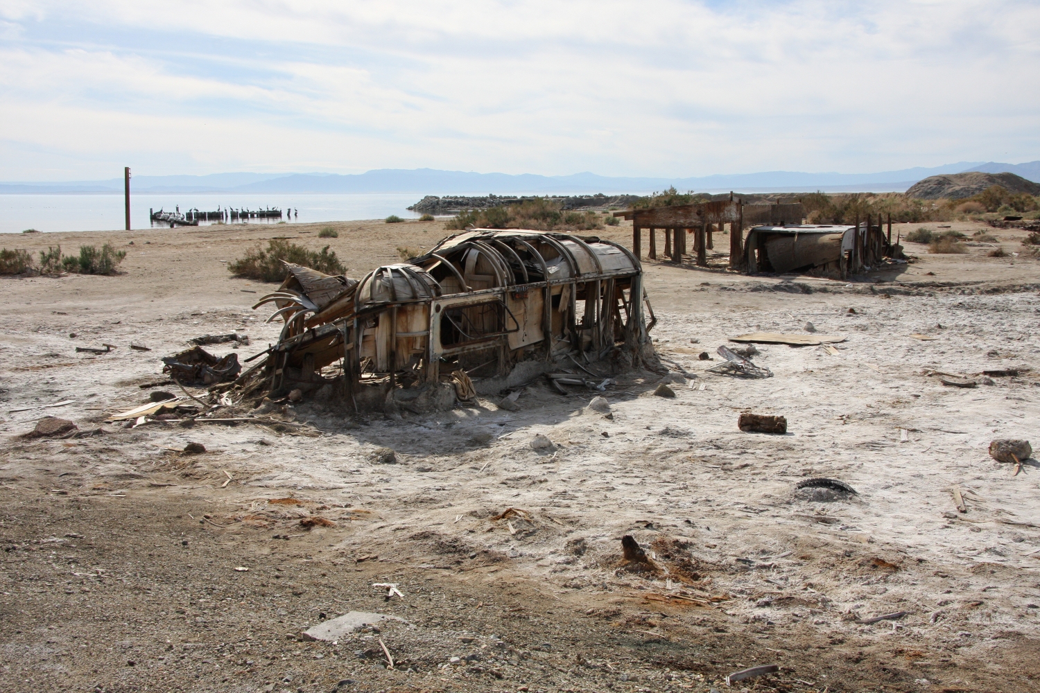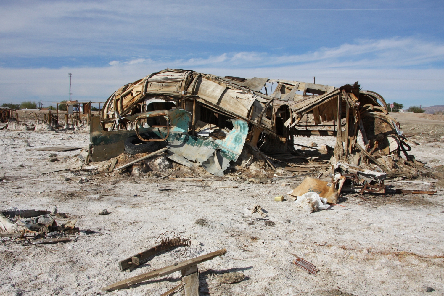Salton City is a settlement area in southern California’s Colorado Desert that is often presented in different narrative genres as a symbol of the historical disaster of Californian land speculation, from Marisa Silver‘s The God of War (2008) to the documentary film Plaques and Pleasures on the Salton Sea (2007). In these portrayals the shared enthusiasm of the residents of Salton City is usually contrasted with the desolate scenery around them: the remains of wooden building s standing in the red mud and dried-out, headless palms framing the skeletons of rust-eaten campers and trucks, mountains of fish and bird cadavers, and crumbling infrastructure – relics of a better time.3 It is reported that Salton City is ridiculed or ignored by most Californian residents. And yet, located on the shores of the Salton Sea, California’s largest inland body of water, and boasting 350 days of sunshine every year, Salton City had auspicious beginnings.